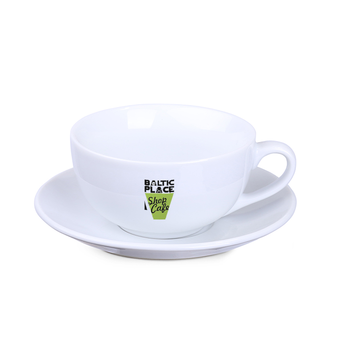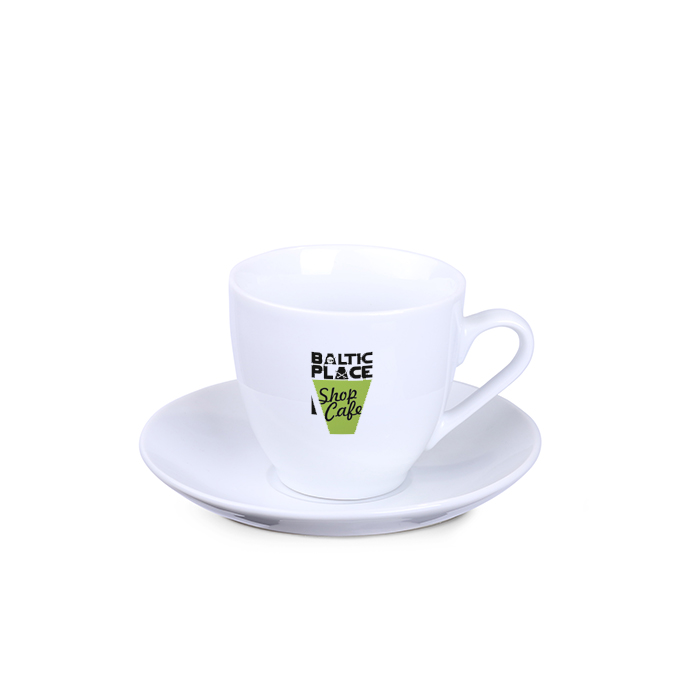 Filiżanka reklamowa o klasycznych, obłych kształtach. Filiżanka dostępna w trzech wersjach rozmiarowych.