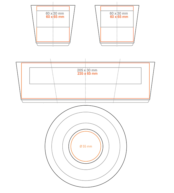 * W przypadku projektów wybiegających poza standardową powierzchnię nadruku prosimy o kontakt z działem handlowym.